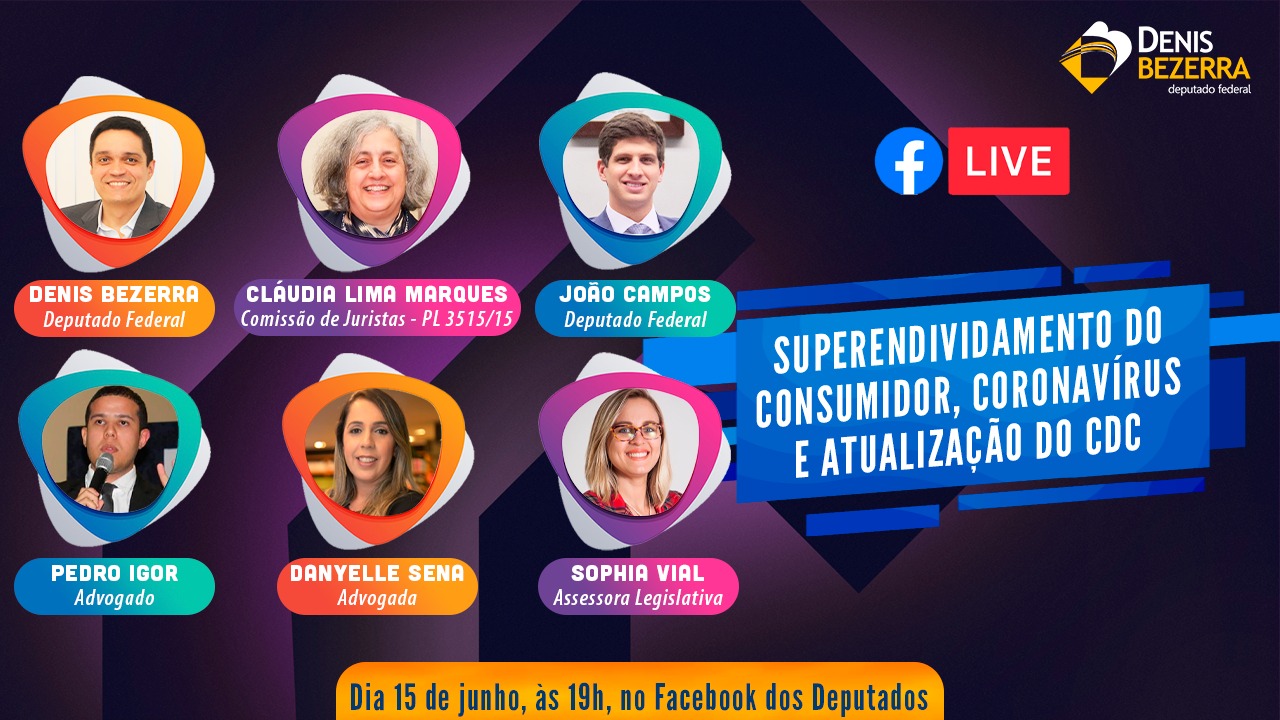 Para encerrar a programação, outra lives, no facebook, às 19h, para falar a respeito do “Superendividamento do consumidor, coronavírus e atualização do CDC”. A live contará com a participação do deputado federal Denis Bezerra e João Campos (PSB-PE), ao lado da professora Claudia Lima Marques, referência mundial em Direito do Consumidor, além de contar ainda com a participação de representantes de Procons e da OAB Ceará.