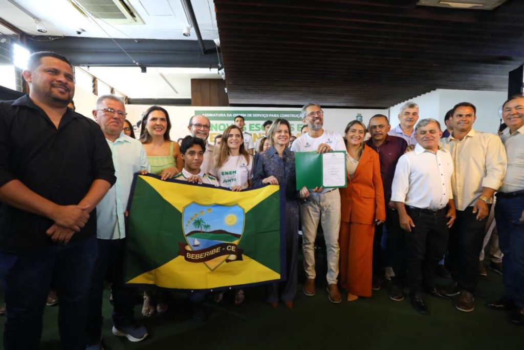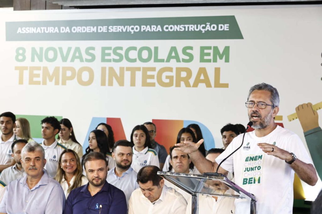 O Ceará avança para a universalização do tempo integral na rede pública estadual. Nesta sexta-feira (7), o Governo do Estado autorizou a construção de oito novas escolas de Ensino Médio, com mais de R$ 87 milhões em investimento e cerca de 4.590 estudantes beneficiados. A solenidade foi conduzida pelo governador Elmano de Freitas, no Palácio da Abolição, acompanhado da secretária da Educação, Eliana Estrela; do secretário-Chefe da Casa Civil, Chagas Vieira; prefeitos; e outras autoridades.