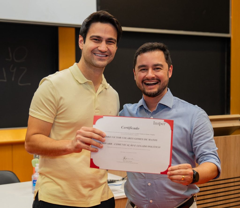 O deputado estadual Pedro Matos participou, nos dias 30 e 31 de janeiro, do curso Comunicação e Legado Político, realizado em São Paulo. A formação foi promovida pelo RenovaBR em parceria com o INSPER e reuniu parlamentares e lideranças de diferentes estados.