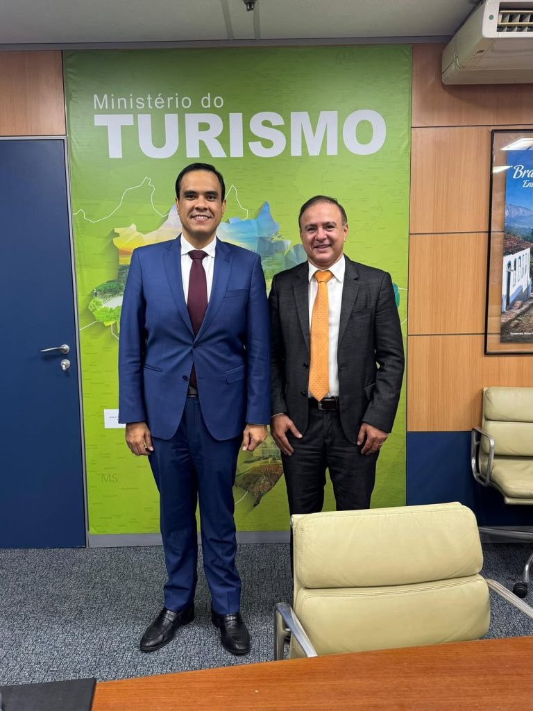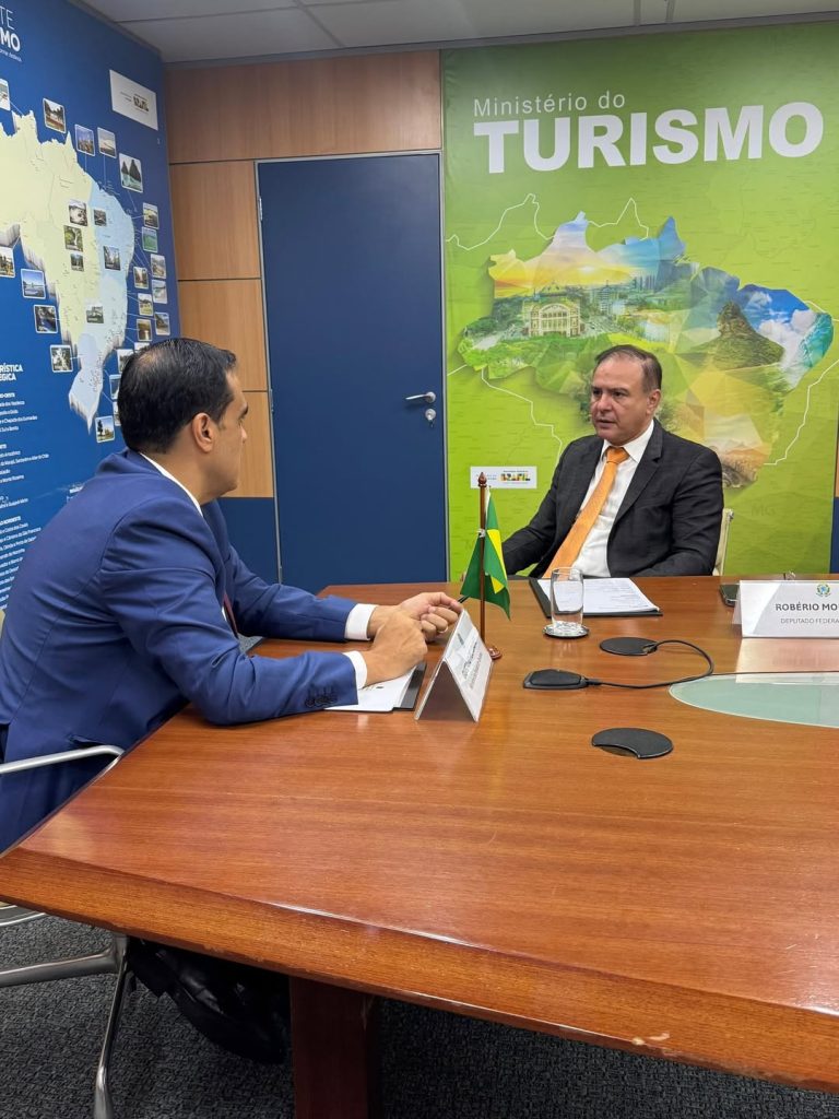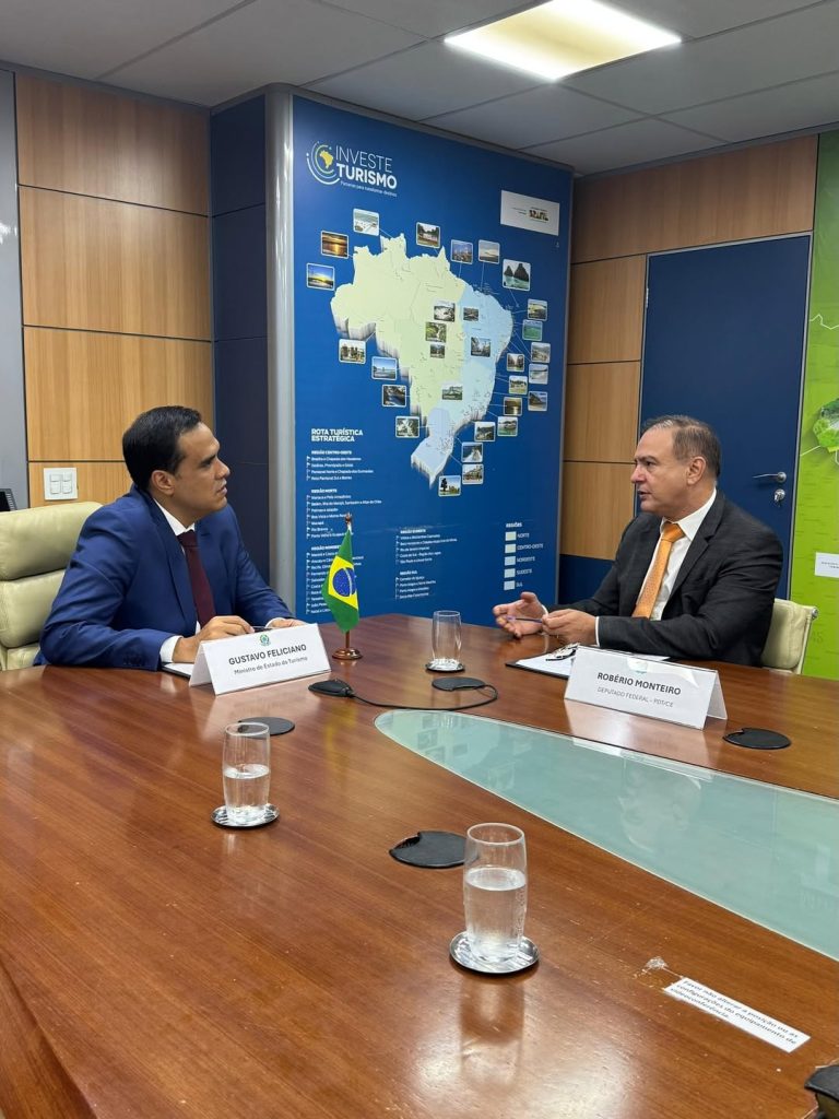 O deputado federal Robério Monteiro participou, nesta terça-feira (03), de uma audiência com o ministro do Turismo, Gustavo Feliciano, com o objetivo de discutir pautas estratégicas voltadas ao fortalecimento dos municípios do Ceará. O encontro integrou a agenda institucional do parlamentar em Brasília.