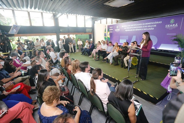 No Ceará, organizações públicas e privadas receberam, nesta sexta-feira (29), o Selo de Equidade de Gênero e Inclusão 2025/2026, promovido pelo Governo do Estado, por meio da Secretaria das Mulheres. A cerimônia, que marcou a primeira edição de entrega, foi realizada no Palácio da Abolição, em Fortaleza, com a presença de autoridades, representantes das instituições e beneficiárias do projeto Empodera.