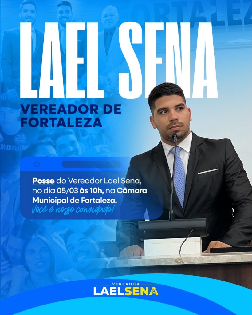 O suplente de vereador de Fortaleza, Lael Sena, toma posse nesta quinta-feira, 5, como vereador da capital cearense. O parlamentar assume a vaga com base na confiança dos 5.782 votos conquistados nas últimas eleições, ocupando a posição de primeiro suplente do PL.