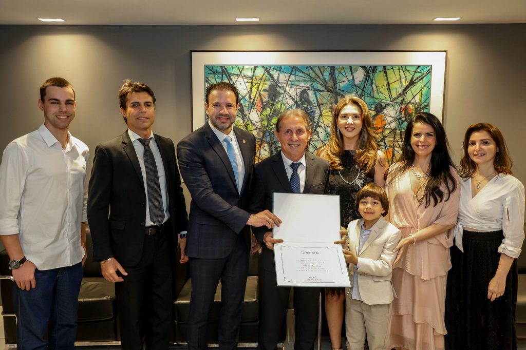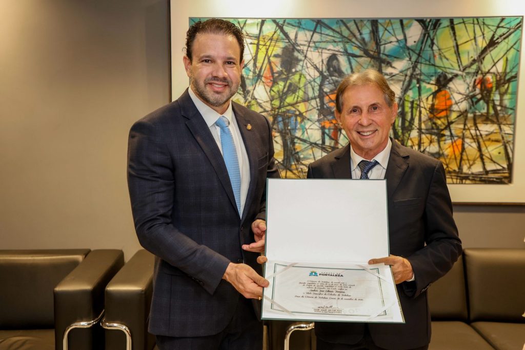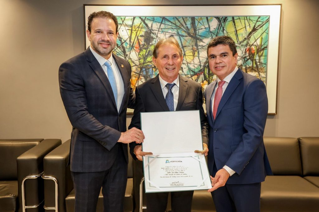 A Câmara Municipal de Fortaleza (CMFor) entregou, nesta sexta-feira (28), o título de cidadão fortalezense para o empresário Vilmar Ferreira, fundador do Grupo Aço Cearense. Proposta pelo presidente da Casa, vereador Leo Couto (PSB), a homenagem busca reconhecer os relevantes serviços prestados pelo industrial para o desenvolvimento socioeconômico da Capital. A honraria foi aprovada em maio deste ano.