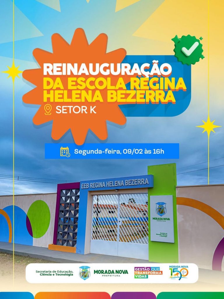 A inauguração será aberta ao público, e a Prefeitura de Morada Nova convida a população a participar do momento, que simboliza mais uma conquista para a educação do município.