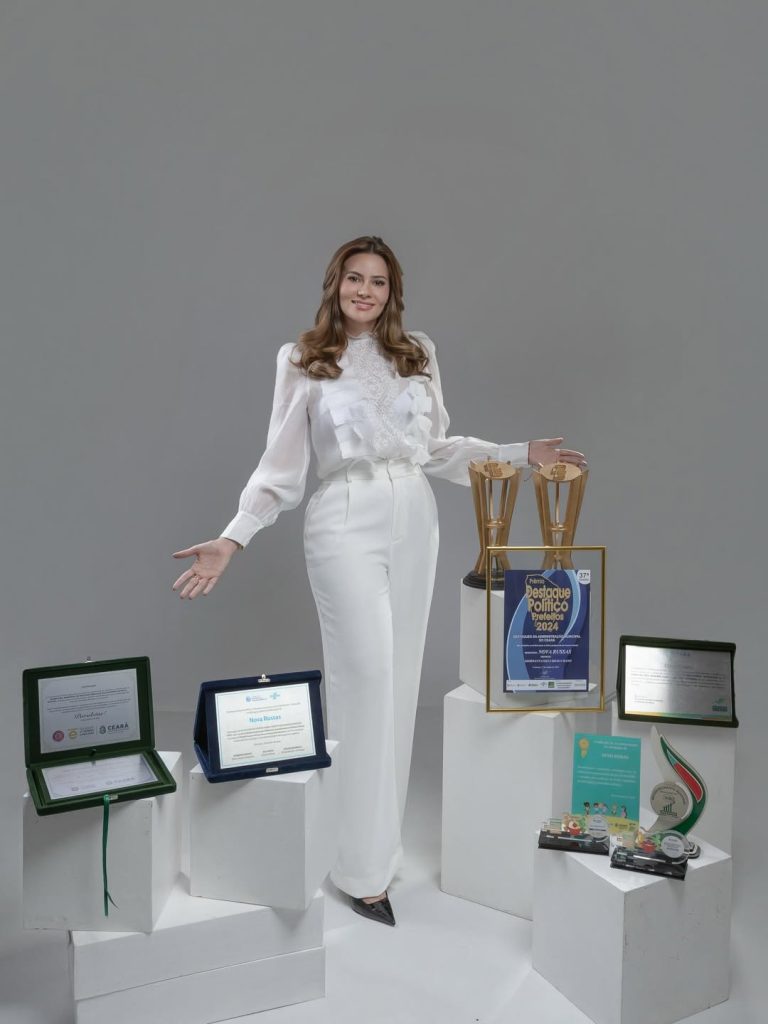 Na última segunda-feira, 22/12, a prefeita de Nova Russas, Giordanna Mano, compartilhou em suas redes sociais uma foto em uma galeria com diversos prêmios conquistados ao longo de sua gestão. Ela destacou as conquistas nas áreas de educação, assistência social, infraestrutura, saúde, inclusão, meio ambiente, administração e finanças, e cultura, reafirmando que sua gestão tem sido próspera para os novarussenses.