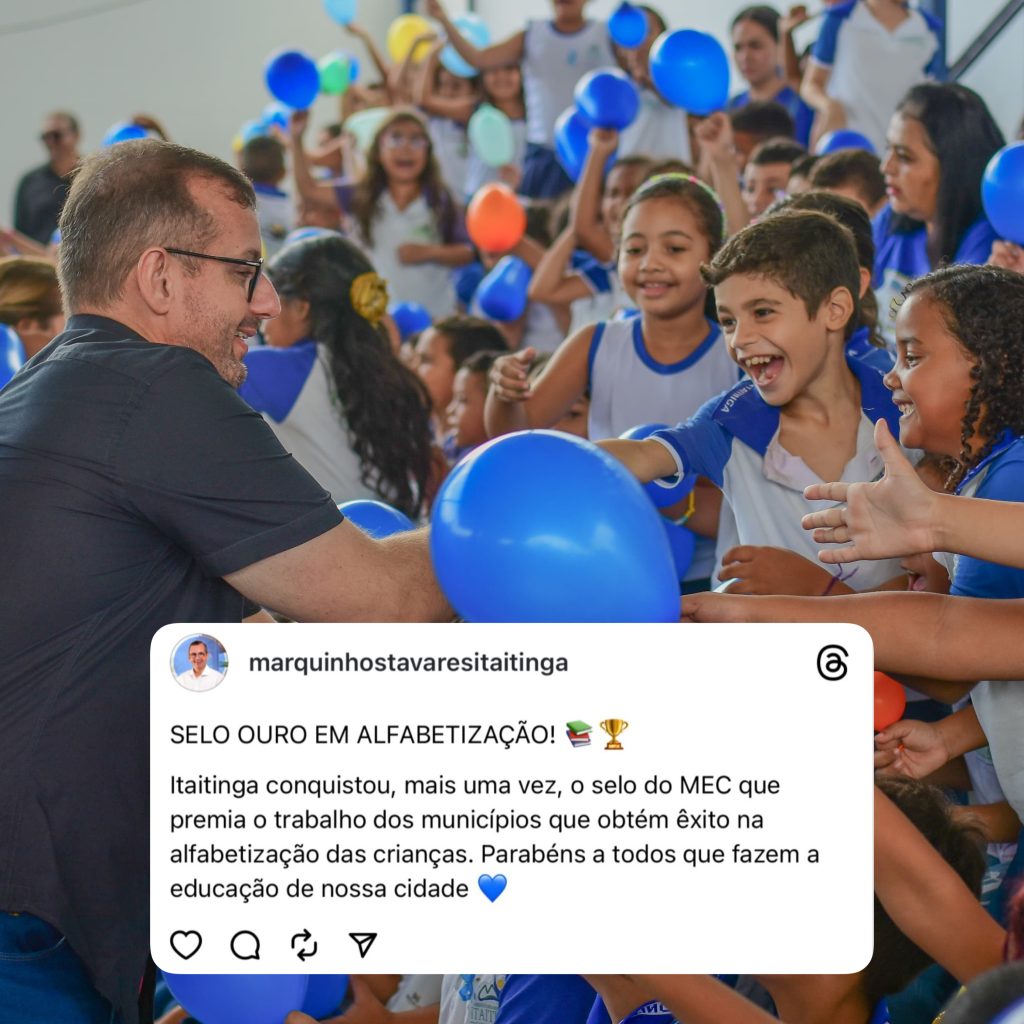 Para o prefeito Marquinhos Tavares, o reconhecimento é resultado de planejamento, investimentos e trabalho coletivo. Segundo ele, a educação é a base do desenvolvimento do município e o selo reflete o esforço conjunto de professores, gestores, famílias e da gestão pública na construção de um futuro com mais oportunidades para as crianças de Itaitinga.