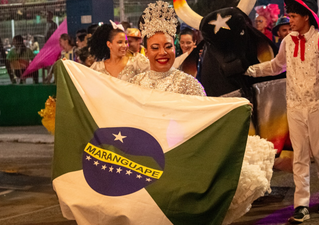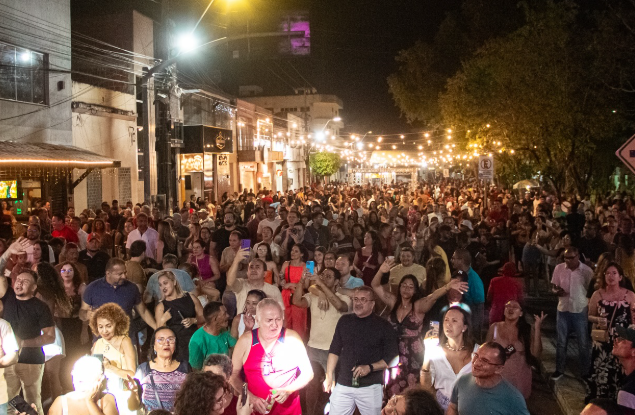 A noite seguiu com apresentações de artistas maranguapenses e com a participação do Festival Internacional de Teatro do Ceará, que levou ao público espetáculos e integração cultural, ampliando a diversidade da programação.