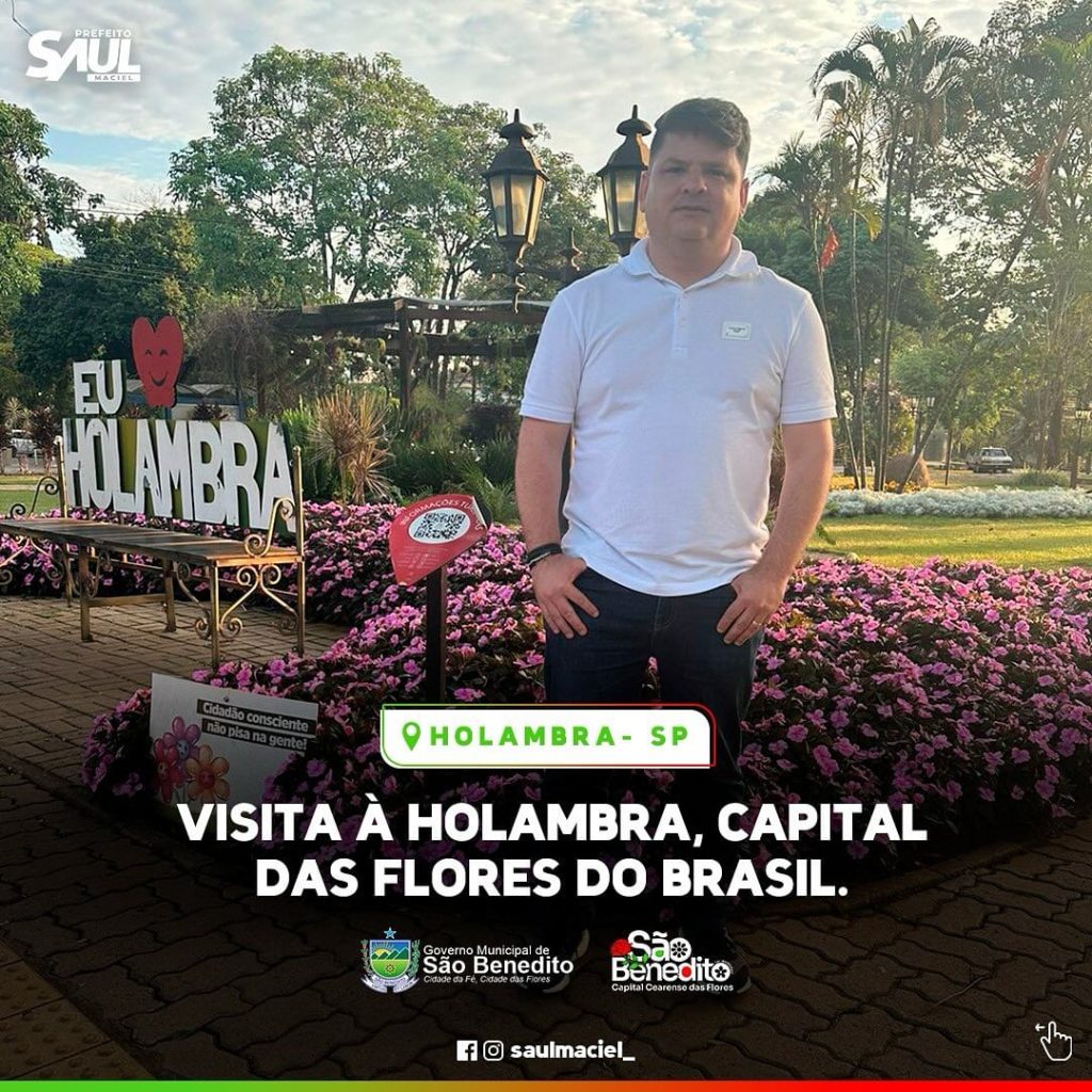 O prefeito de São Benedito, Saúl Maciel, visitou Holambra, no Interior de São Paulo. O município é conhecido como a Capital das Flores do País.