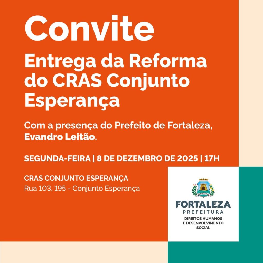 O prefeito de Fortaleza, Evandro Leitão, entregou, nesta segunda-feira (8), a requalificação do Centro de Referência de Assistência Social (Cras) Conjunto Esperança, marcando mais um avanço no pacote de modernização da rede socioassistencial da Capital. Esta é a oitava unidade finalizada e o sexto Cras revitalizado dentro das 22 estruturas previstas para entrega.