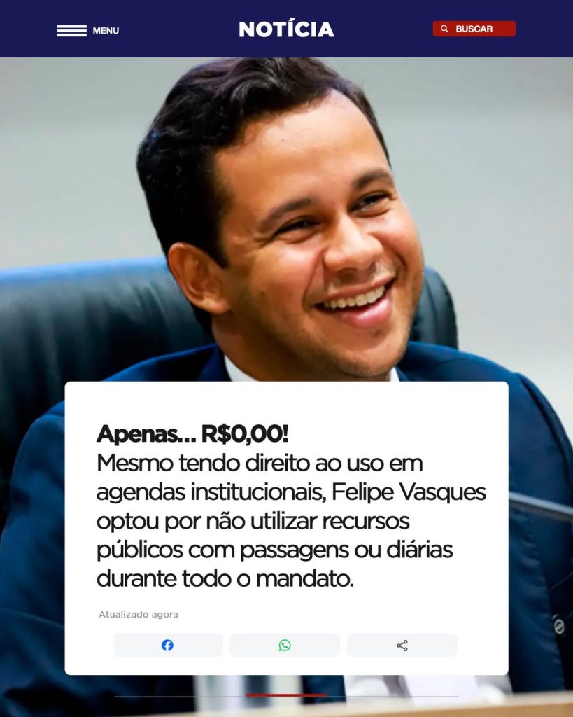 Felipe Vasques reforçou que a decisão foi tomada como demonstração de responsabilidade com o dinheiro público e compromisso com a população, defendendo que a gestão deve ser pautada pelo exemplo.
