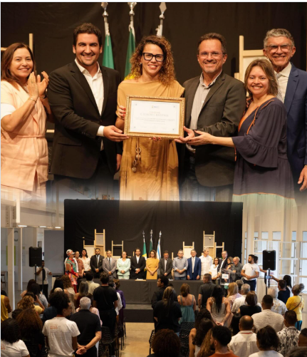 A homenagem destaca a atuação de Luísa Cela no fortalecimento das políticas culturais e no incentivo a projetos que ampliam o acesso da população às manifestações culturais no estado e no município.