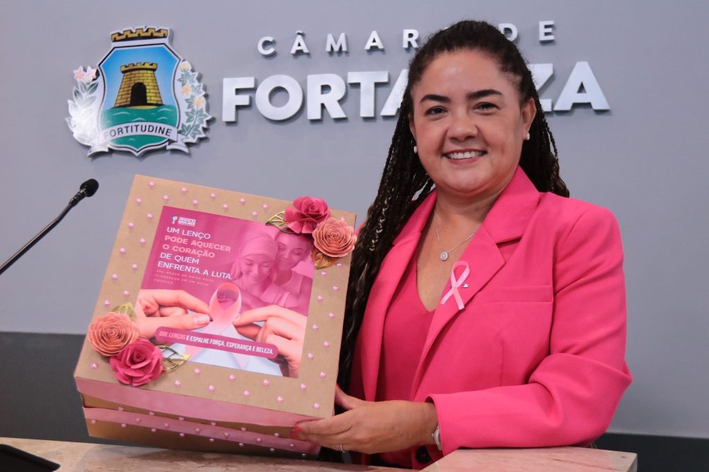 No mês dedicado à prevenção e ao combate ao câncer de mama, a Procuradoria Especial da Mulher da Câmara de Fortaleza integra a campanha promovida pela Secretaria de Mulheres de Fortaleza: “Cada lenço doado é um carinho compartilhado”. A ação que une solidariedade e cuidado visa acolher e fortalecer mulheres em tratamento de câncer de mama, por meio da doação de lenços.