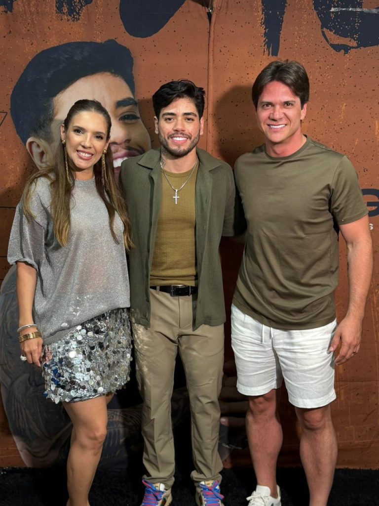 Na imagem, os gestores municipais aparecem ao lado do cantor Thiago Freitas, um dos destaques da programação carnavalesca.