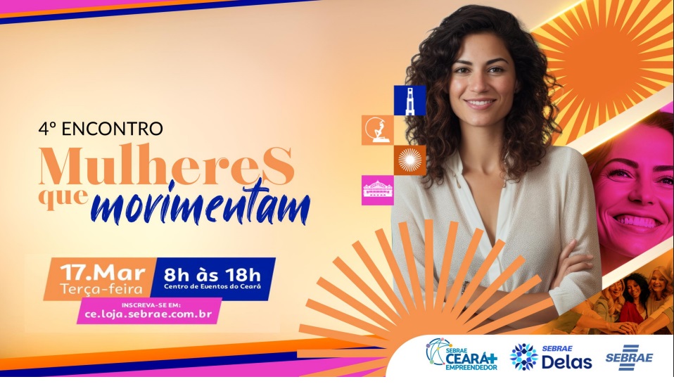 O Sebrae Ceará realiza nesta terça-feira, 17 de março, das 8h às 18h, no Centro de Eventos do Ceará, em Fortaleza, o 4º Encontro Mulheres que Movimentam. O evento tem como objetivo inspirar, conectar e impulsionar novas oportunidades para mulheres empreendedoras e potenciais empresárias do estado.