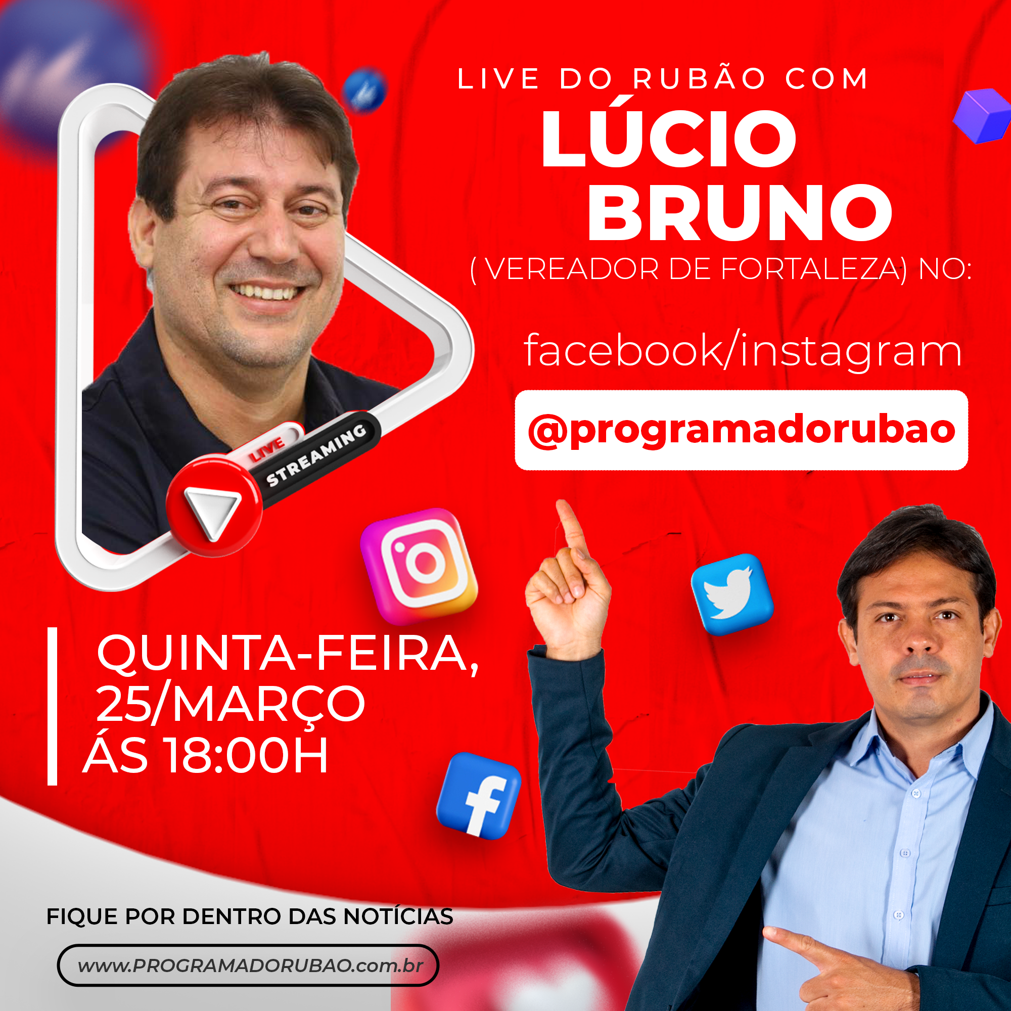Nesta quinta-feira, 25, às 18h, o vereador de Fortaleza, Lúcio Bruno(PDT), será o entrevistado da LIVE DO RUBÃO